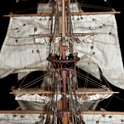 The masts, yards and flagpoles are easily fitted with rigging and other essentials.