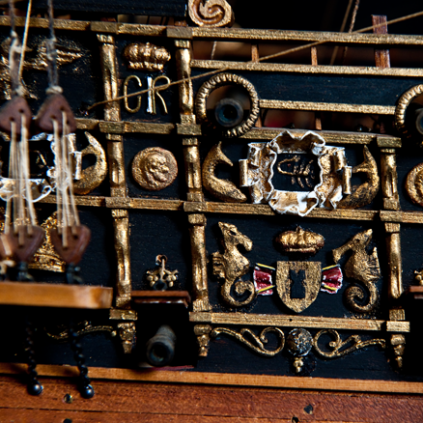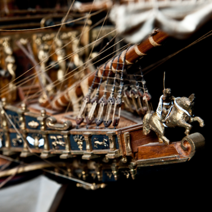 The unique and lavish decor was awe inspiring and shocked the other European seafaring nations of that time. The figurehead and decor of the ship are all made from finely machined metal castings.